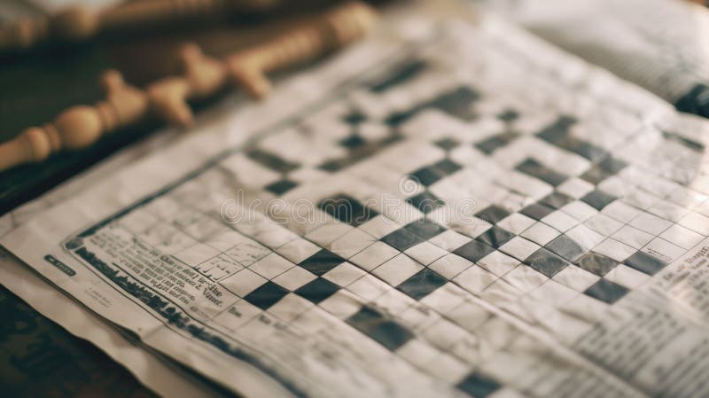 Wrinkled Newspaper with Partially Solved Crossword and Blurred Chess