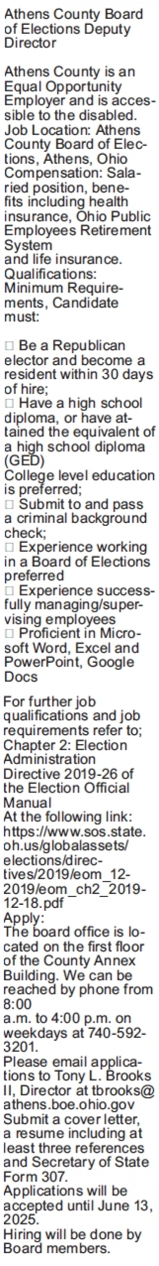 Athens County Board of Elections Deputy Director Athens County Athens OH