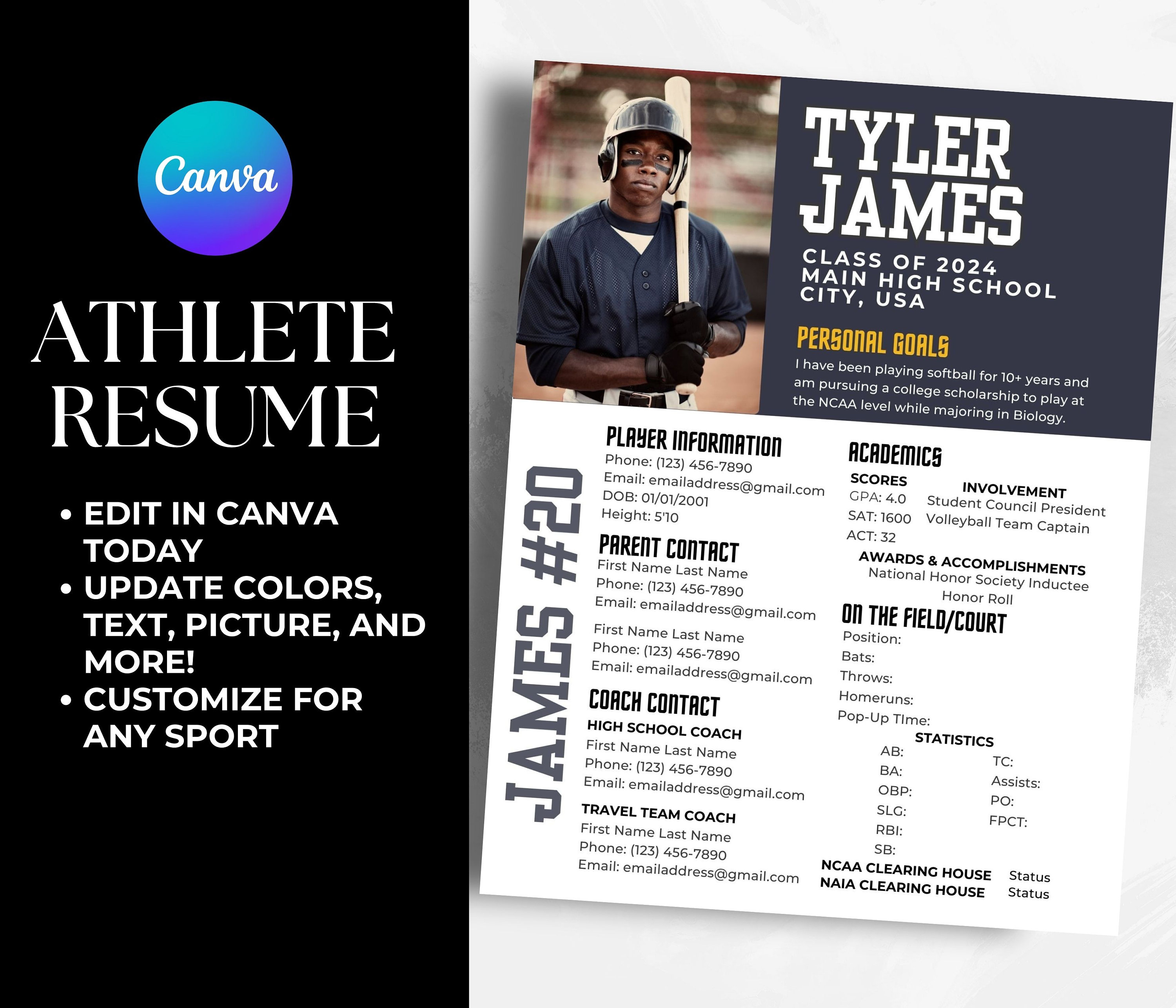 Athlete Resume Profile Sheet Photo College Recruiting Editable Canva