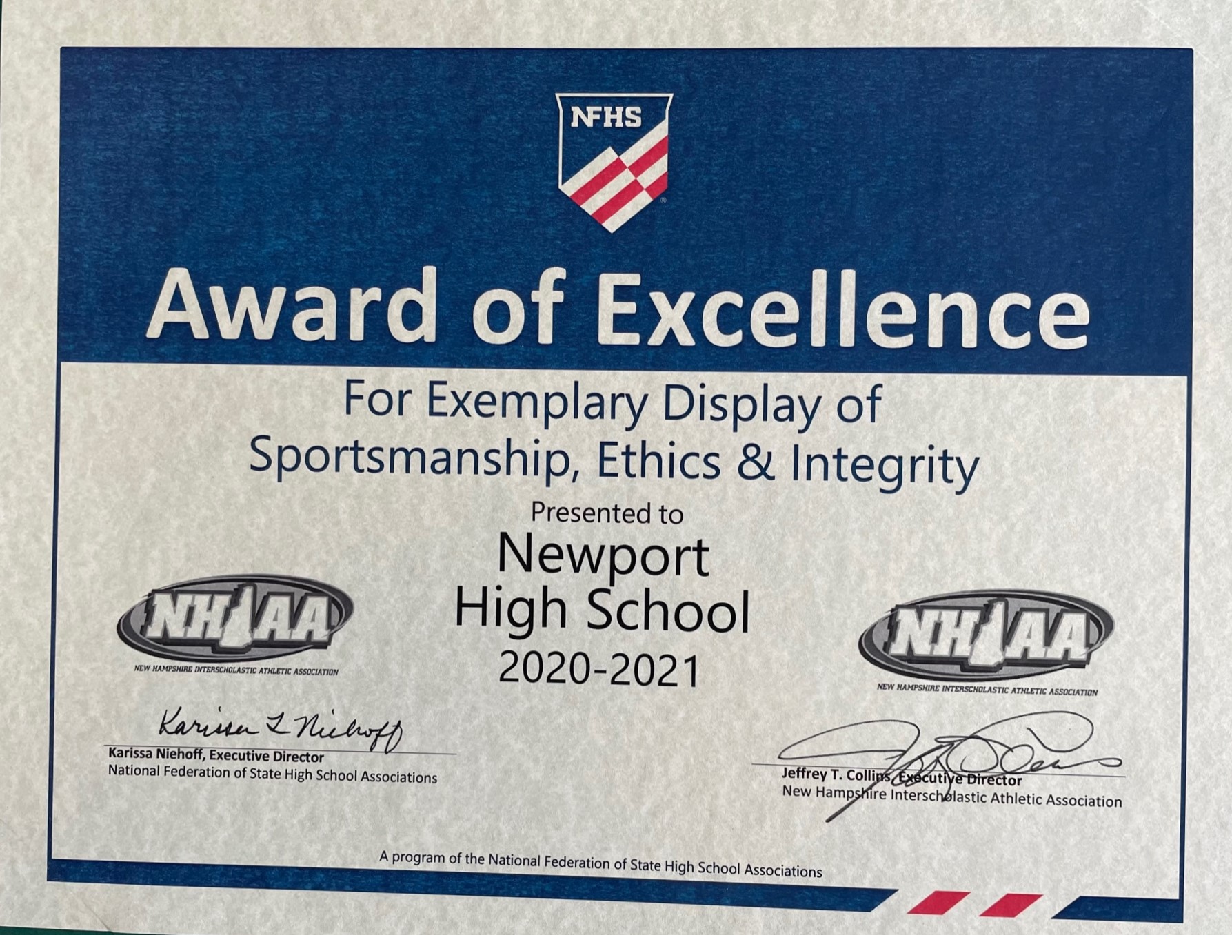 Pine Bush athletics receives Award of Excellence for sportsmanship