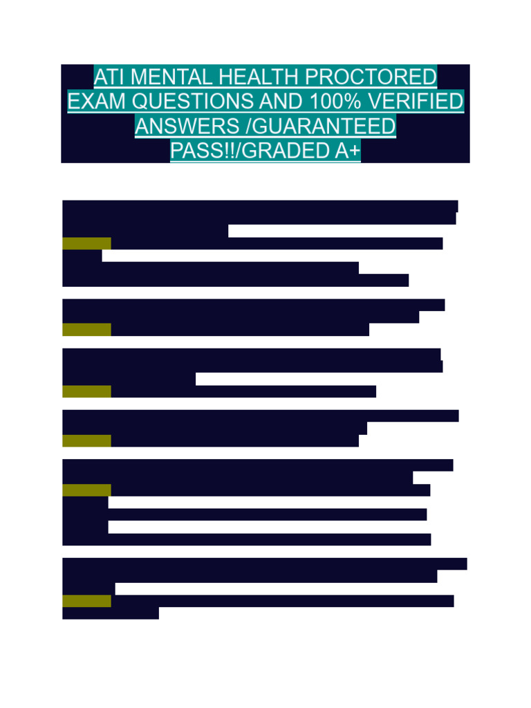 Ati Mental Health Proctored Exam Questions and 100 PDF Mental
