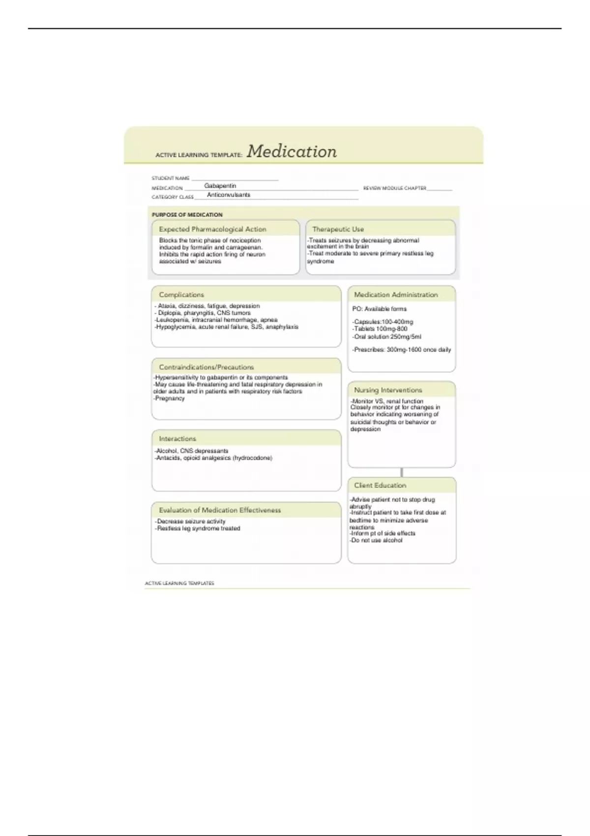 Gabapentin ati ATI Medication cheat sheet ACTIVE LEARNING TEMPLATES