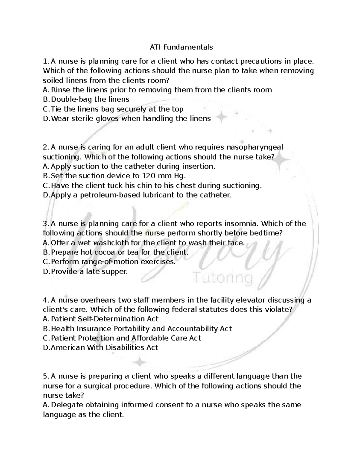 ATI Fundamentals: Nursing Care Scenarios and Best Practices Studocu