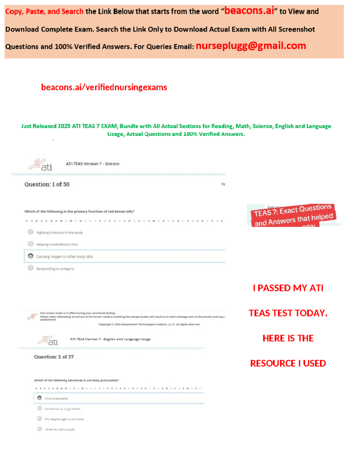 ATI TEAS 7 2025: Comprehensive Study Guide for Nursing Success Studocu