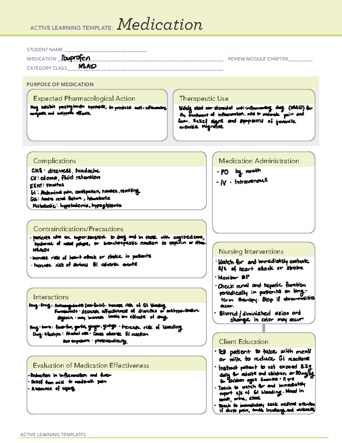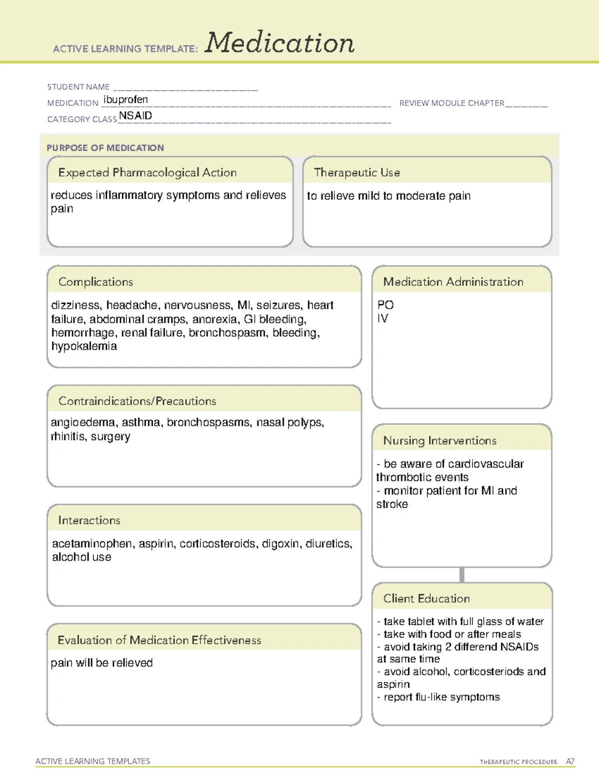 Medication template ATI ibuprofen ACTIVE LEARNING TEMPLATES