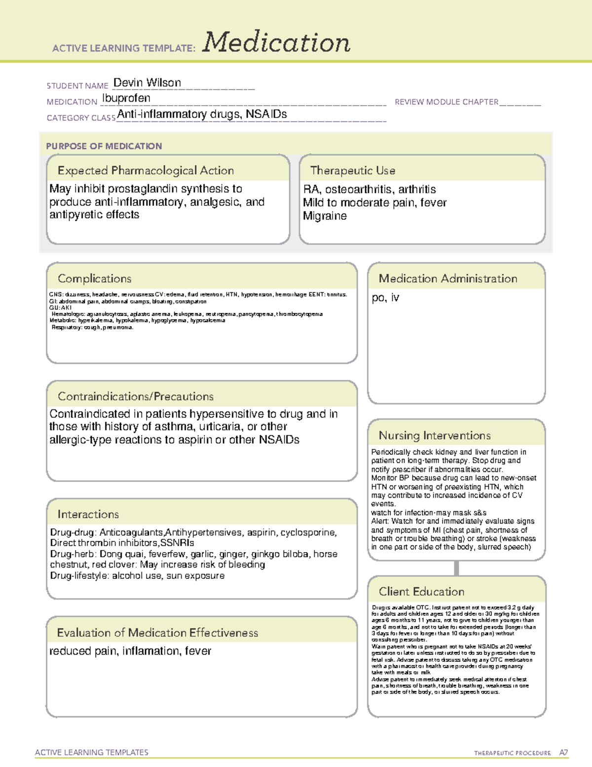 Ibuprofen ati medication ACTIVE LEARNING TEMPLATES TherapeuTic