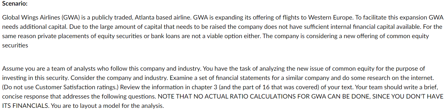 Global Wings Airlines (GWA) is a publicly traded Chegg com