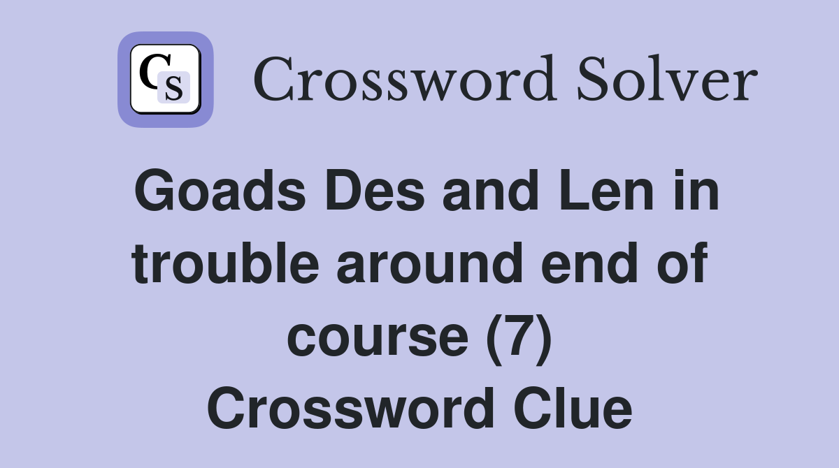 Goads Des and Len in trouble around end of course (7) Crossword Clue