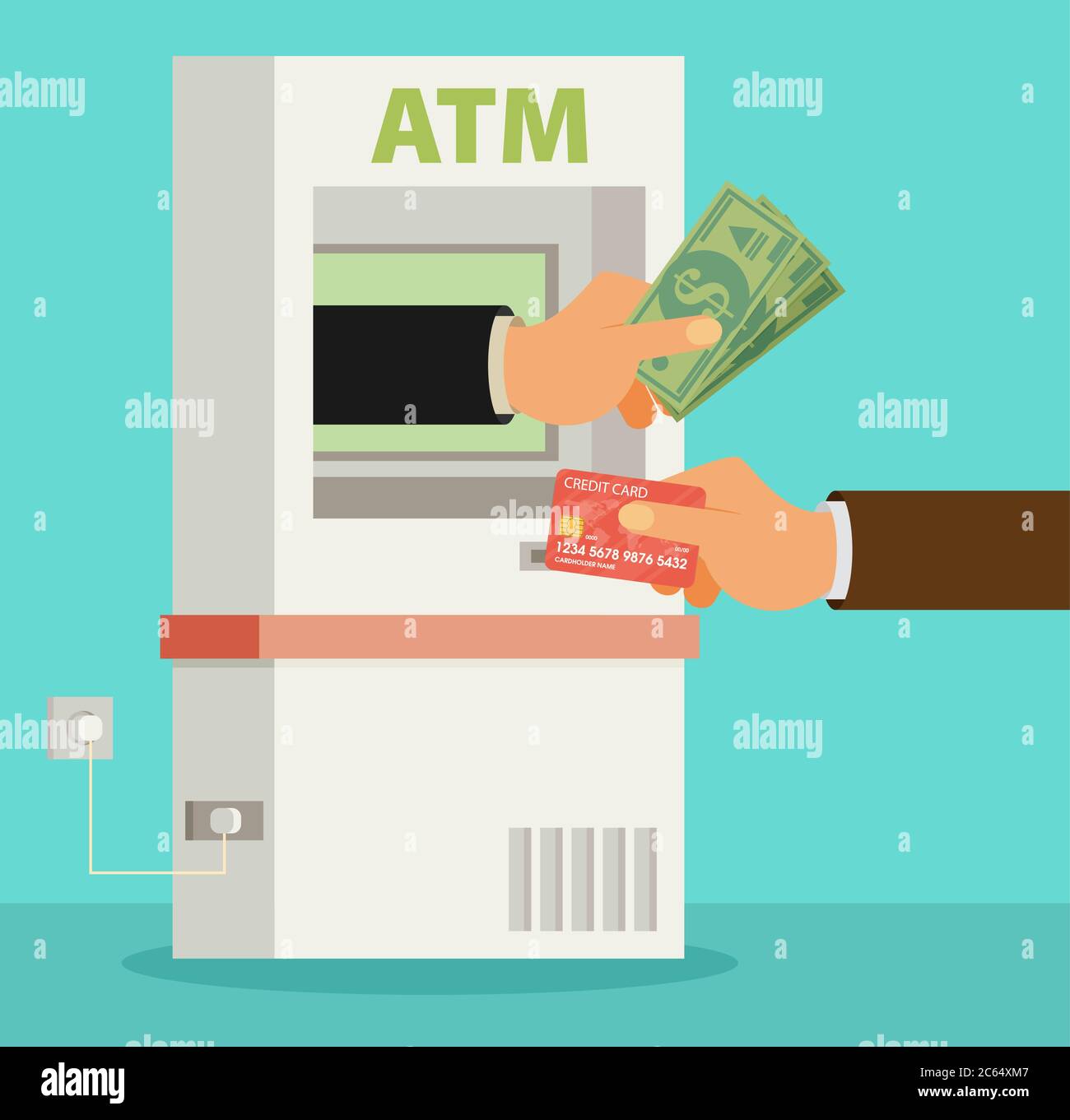 ATM Terminal Usage Vector Concept Payment Using Credit Card ATM