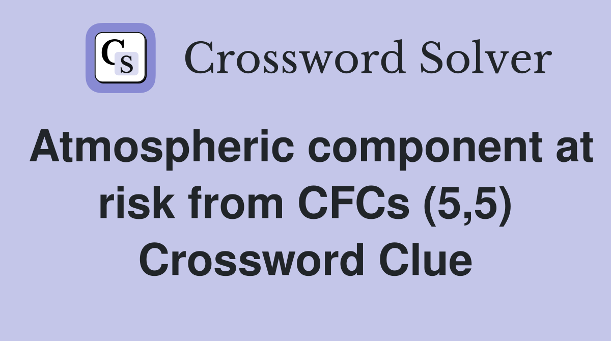 Atmospheric component at risk from CFCs (5 5) Crossword Clue Answers