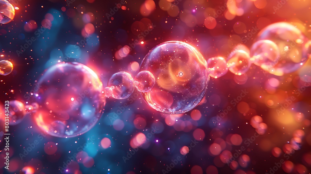 Create an abstract depiction of electrons orbiting around vibrant