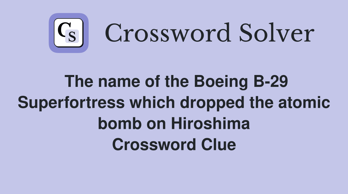 The name of the Boeing B 29 Superfortress which dropped the atomic bomb