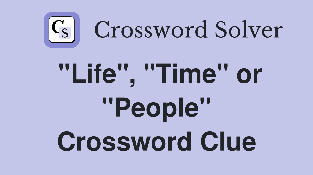 quot Life quot quot Time quot or quot People quot Crossword Clue Answers Crossword Solver
