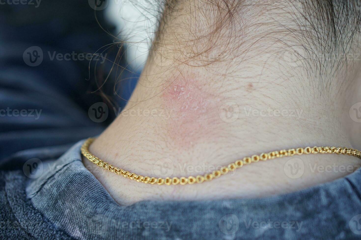Allergic skin on neck wears gold necklace A skin disorder of atopic