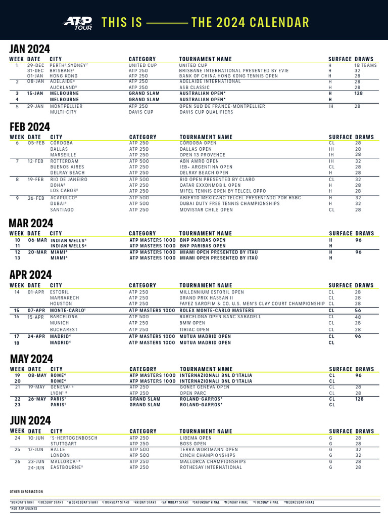 2024 Atp Challenger Calendar As of 9 January 2024 PDF Recurring