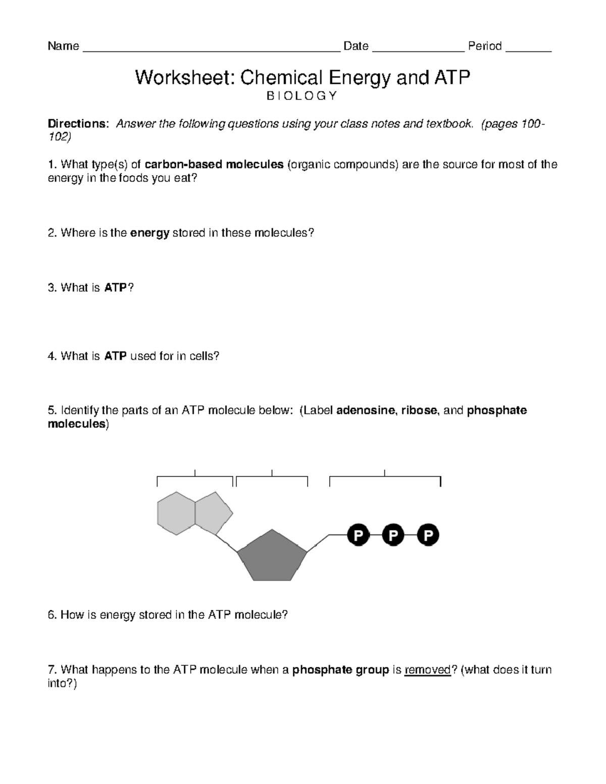 Worksheet chemical energy and ATP Name