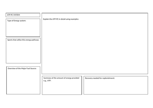 Anatomy and Physiology Energy systems ATP PC worksheet Teaching Resources