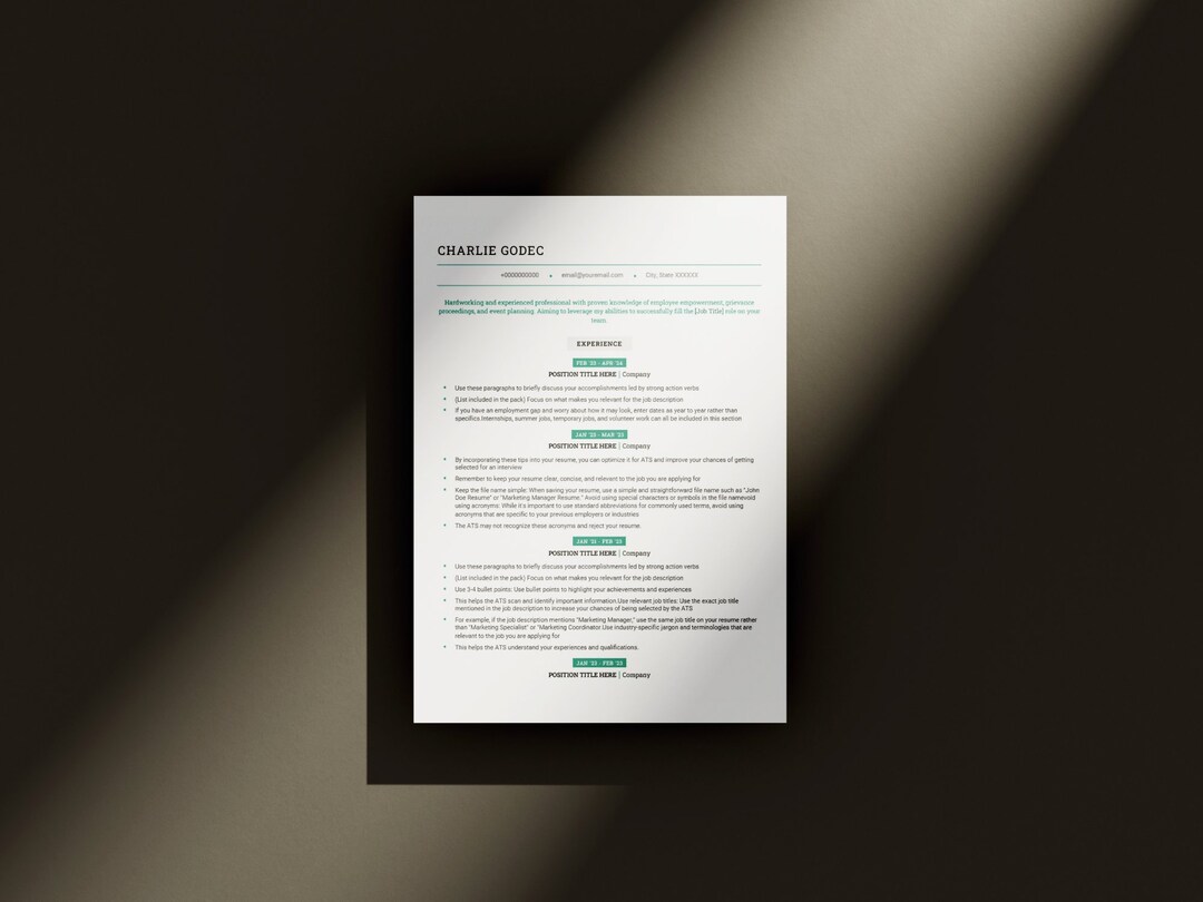 Modern Resume Template Word Ats Excel Google Docs Modern Etsy