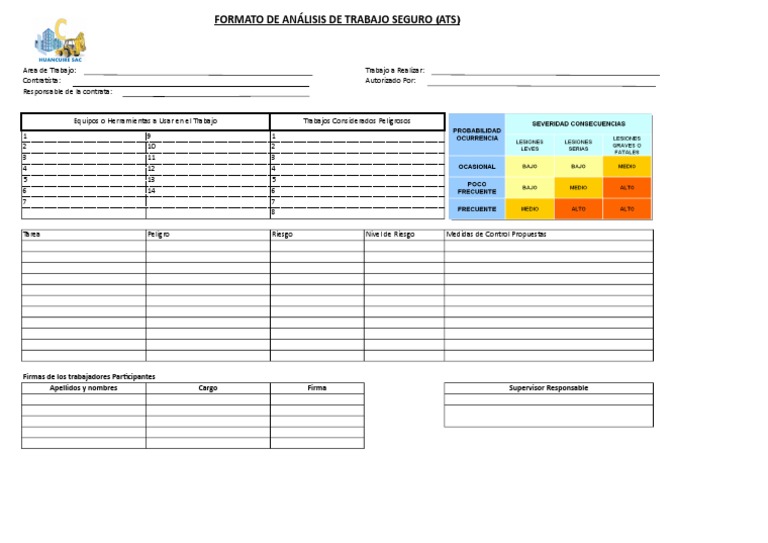 Formato de Analisis De Trabajo Seguro Ats Excel XLS