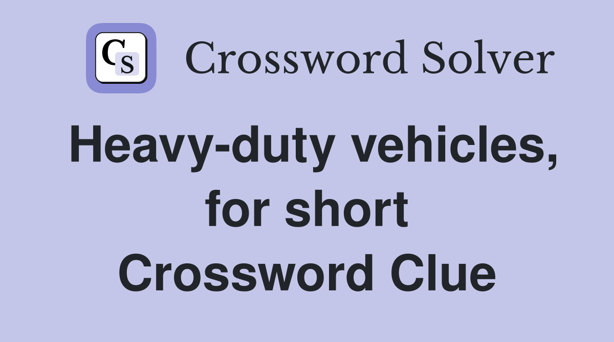Heavy duty vehicles for short Crossword Clue Answers Crossword Solver