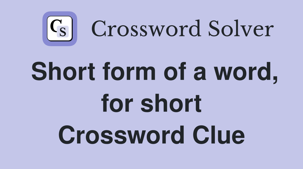 Short form of a word for short Crossword Clue Answers Crossword Solver