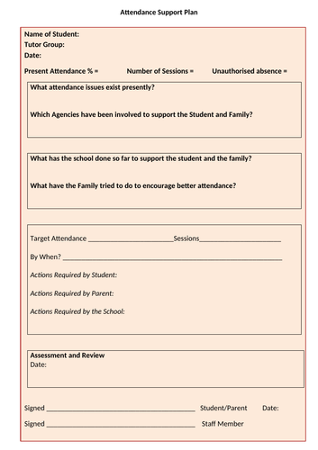 Attendance Improvement Plan Template
