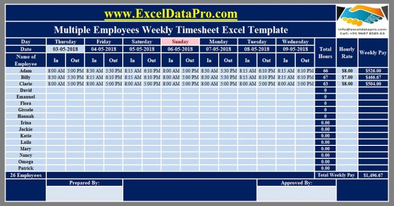 Download Weekly Timesheet Excel Template ExcelDataPro