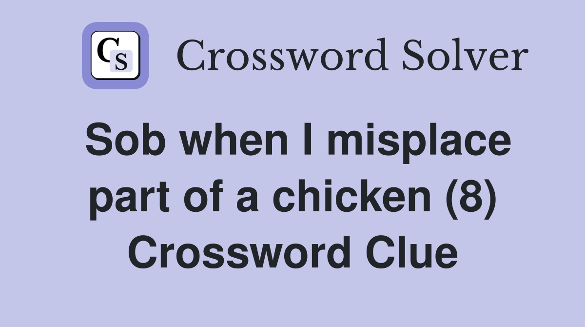Sob when I misplace part of a chicken (8) Crossword Clue Answers