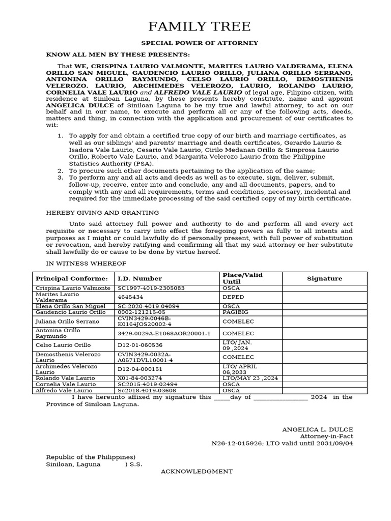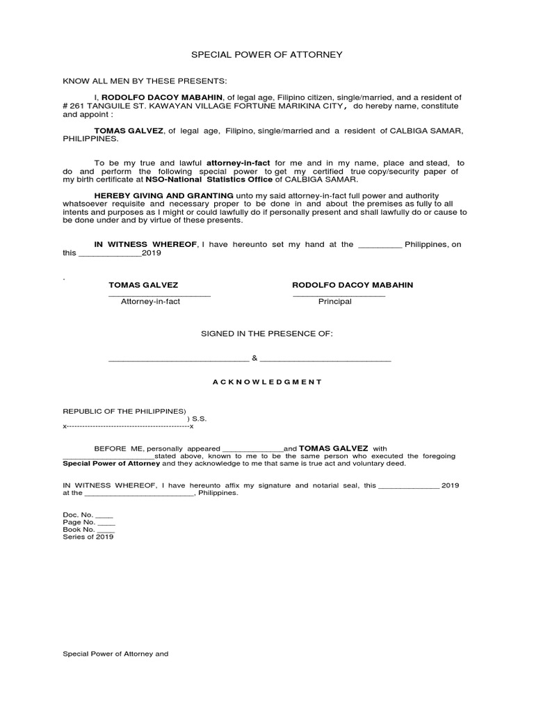 Special Power of Attorney Rodolfo PDF Power Of Attorney Birth