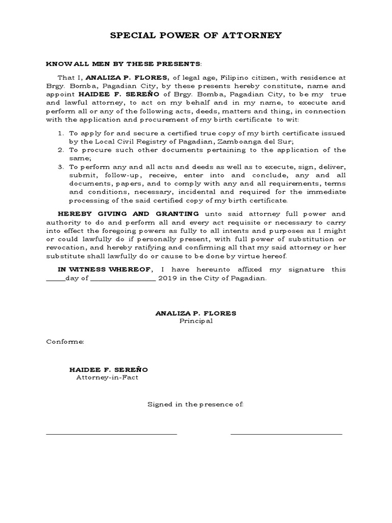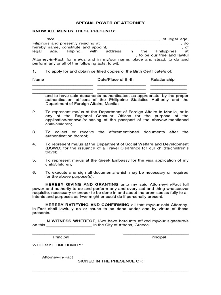Special Power of Attorney PDF Power Of Attorney Birth Certificate