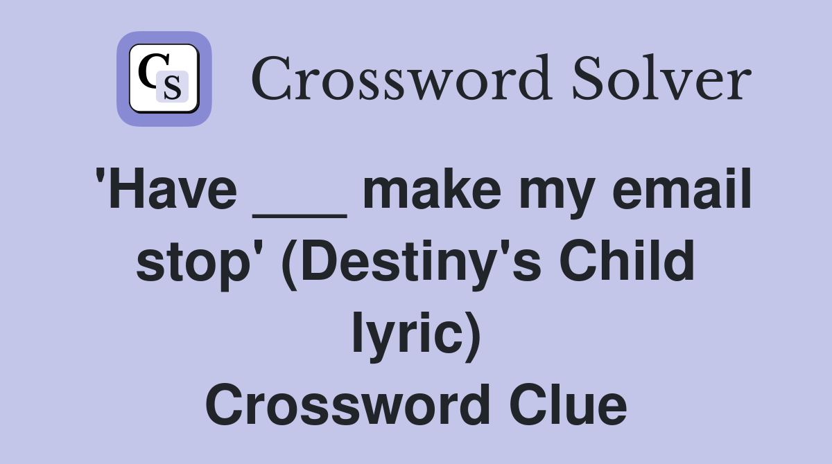 #39 Have make my email stop #39 (Destiny #39 s Child lyric) Crossword Clue