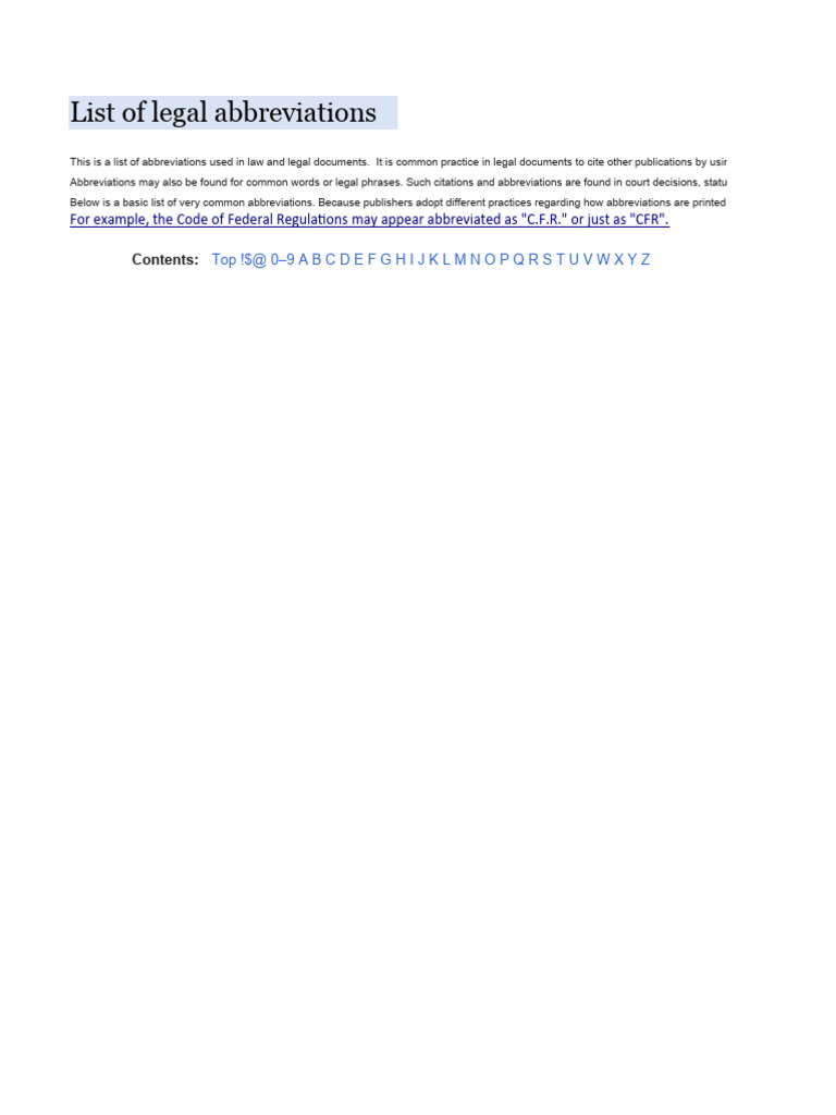 Legal Abbreviations: A list of abbreviations referred to in legal