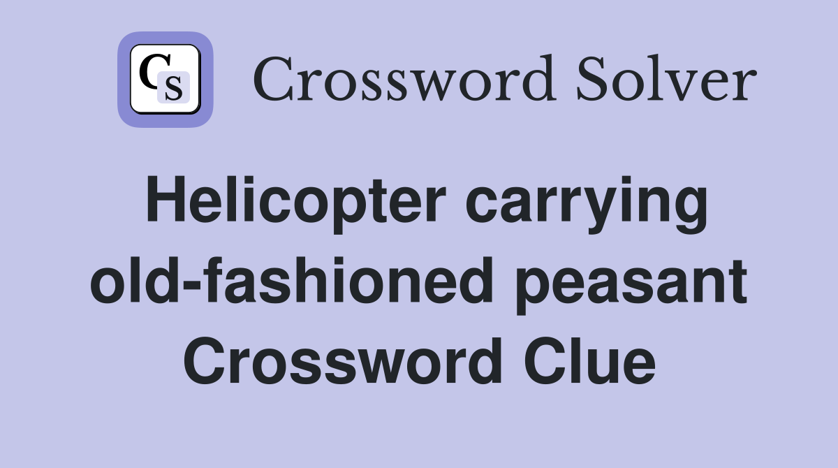 Helicopter carrying old fashioned peasant Crossword Clue Answers