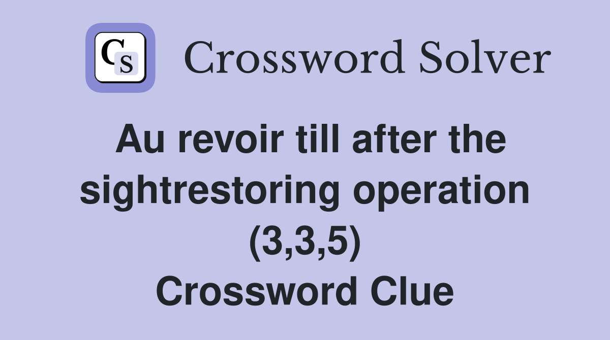 Au revoir till after the sightrestoring operation (3 3 5) Crossword