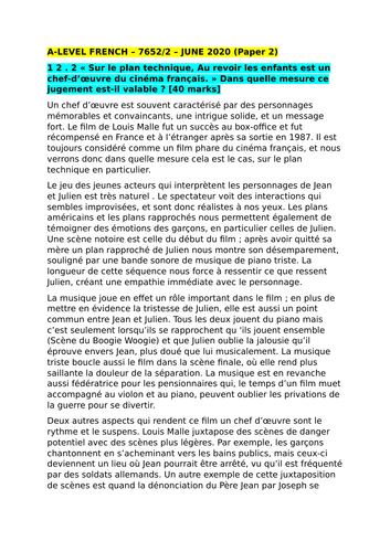 A Level Paper 2: AU REVOIR LES ENFANTS Model essay and essay writing