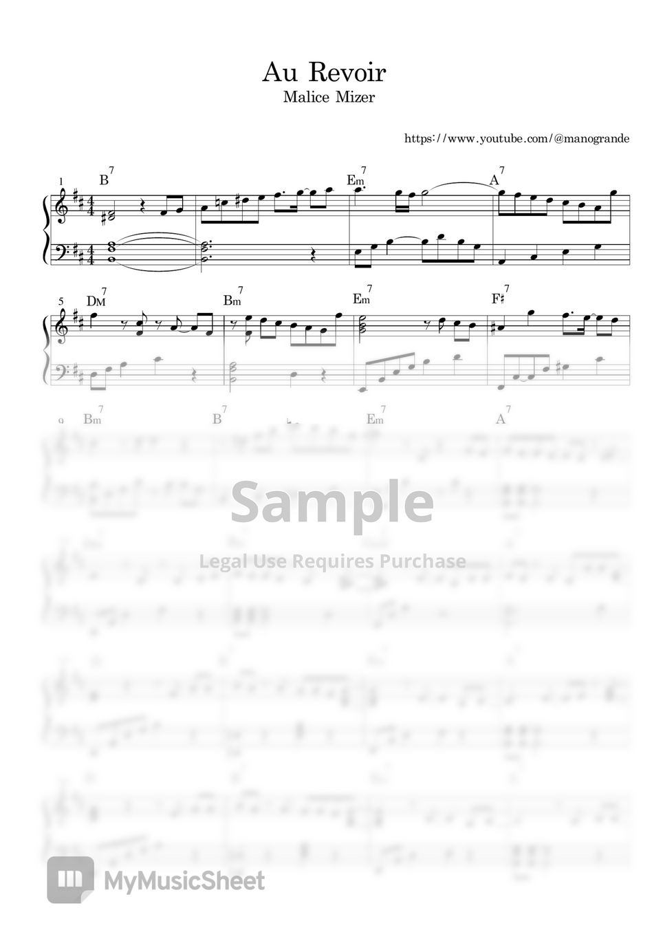 Malice Mizer Au Revoir (Piano solo with Chord) Sheets by ManoGrande