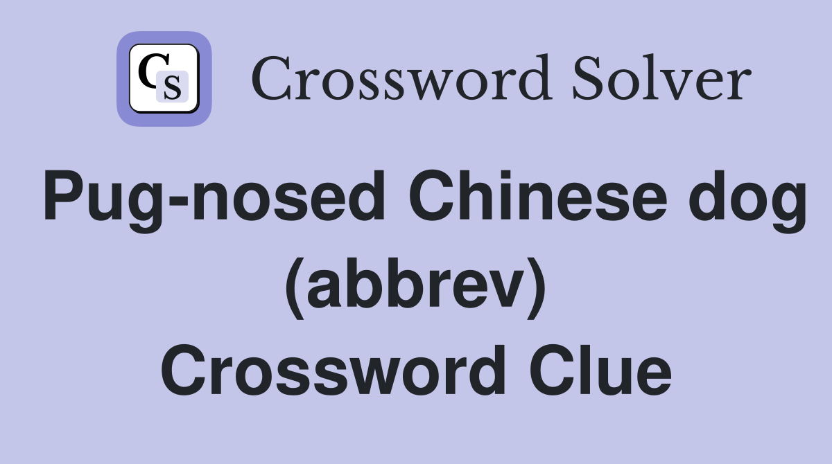 Pug nosed Chinese dog (abbrev) Crossword Clue Answers Crossword Solver