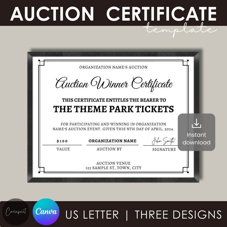 Editable Silent Auction Winner Certificate Template Auction Item