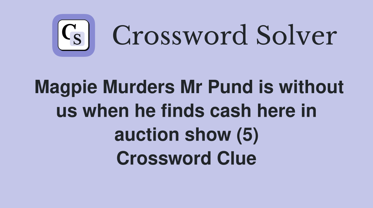 Magpie Murders Mr Pund is without us when he finds cash here in auction