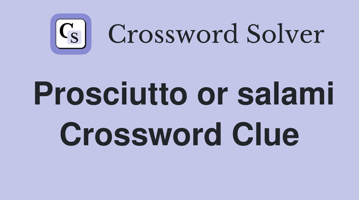 Prosciutto or salami Crossword Clue Answers Crossword Solver