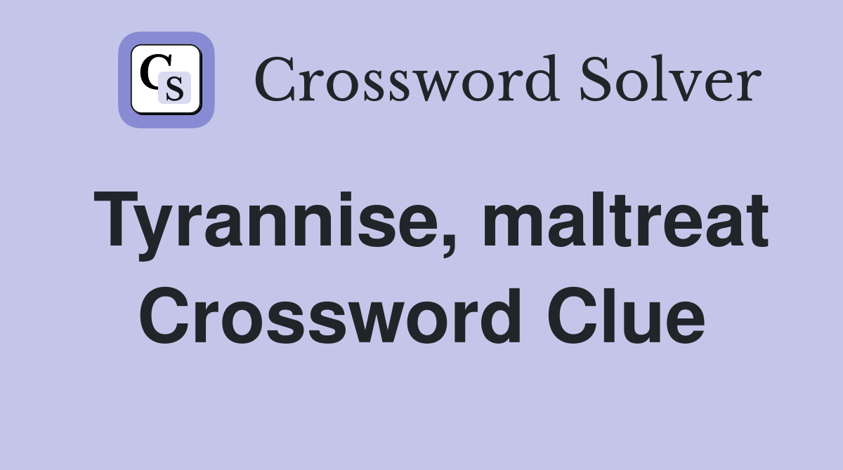 Tyrannise maltreat Crossword Clue Answers Crossword Solver