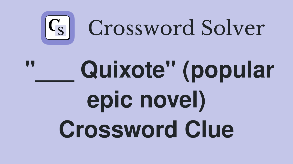 Quixote quot (popular epic novel) Crossword Clue Answers Crossword Solver