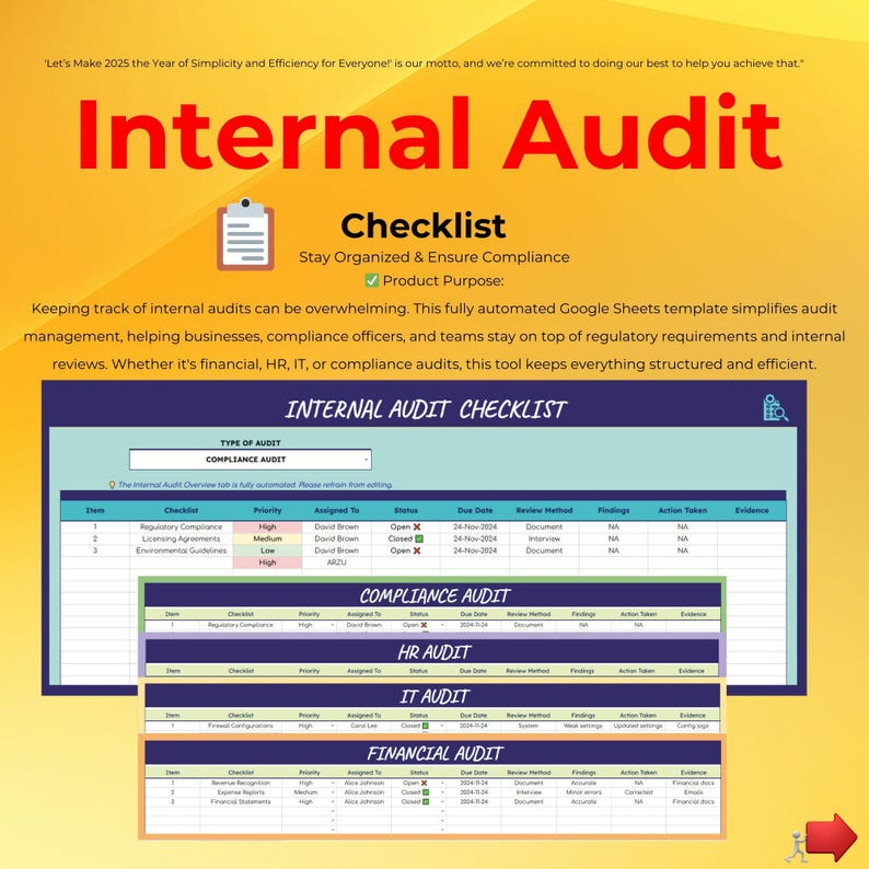 Internal Audit Checklist Template Google Sheets Tool Editable