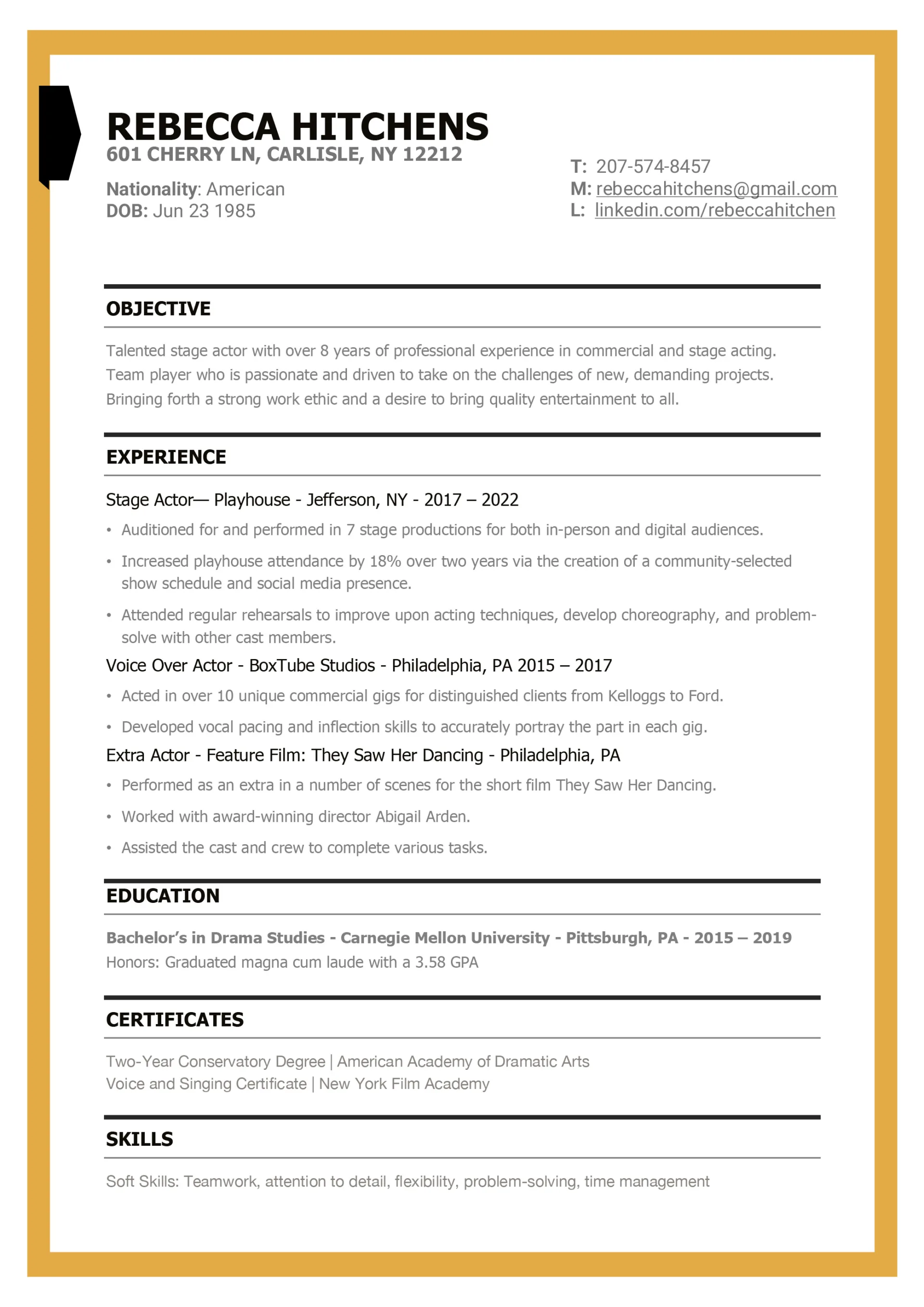 Free Actor Resume Templates in Google Docs thegoodocs com