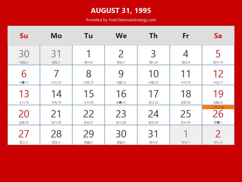 Chinese Calendar Aug 31 1995: Auspicious Things to Do and Hours Bazi