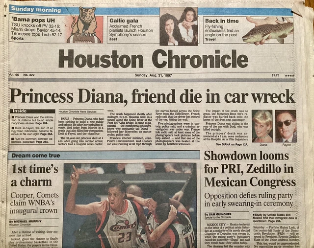 PRINCESS DIANA DEATH First Day Shocking Story Houston Chronicle Aug