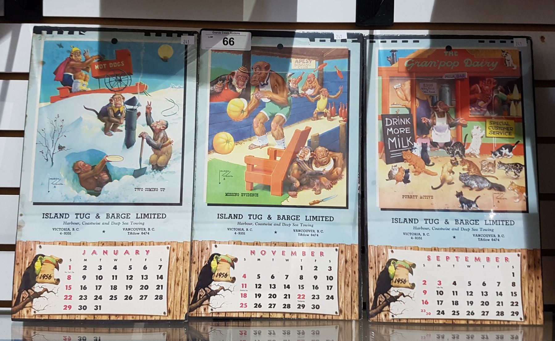 3 VINTAGE 1956 CALENDARS