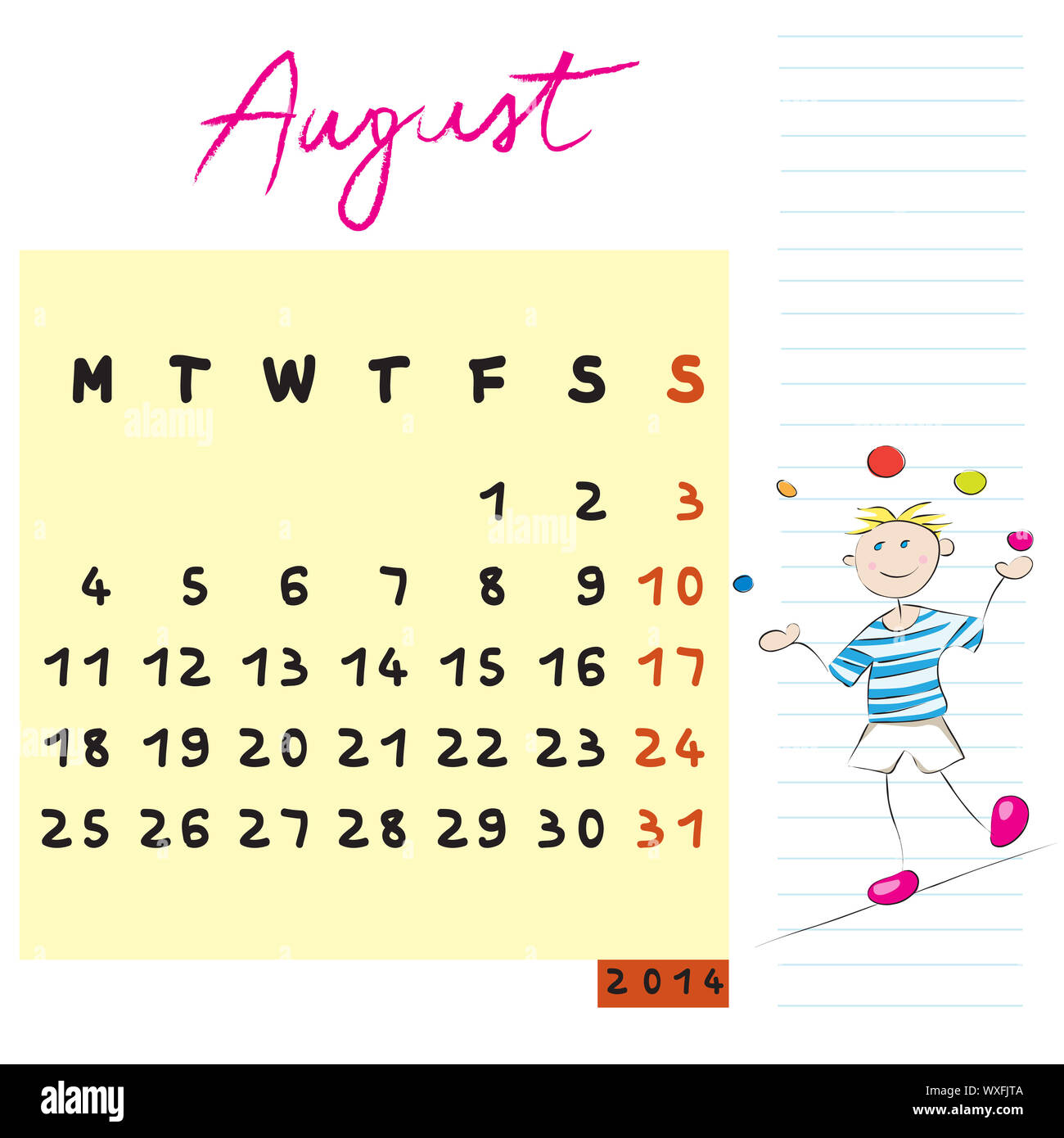 A Colored Illustration Of An August 2014 Calendar Stock Photo