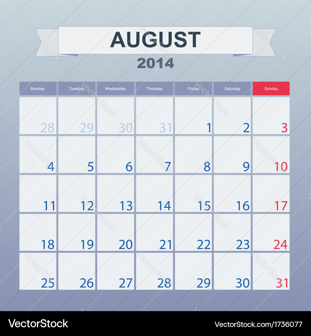 August 2014 Calendar Royalty Free Vector Image