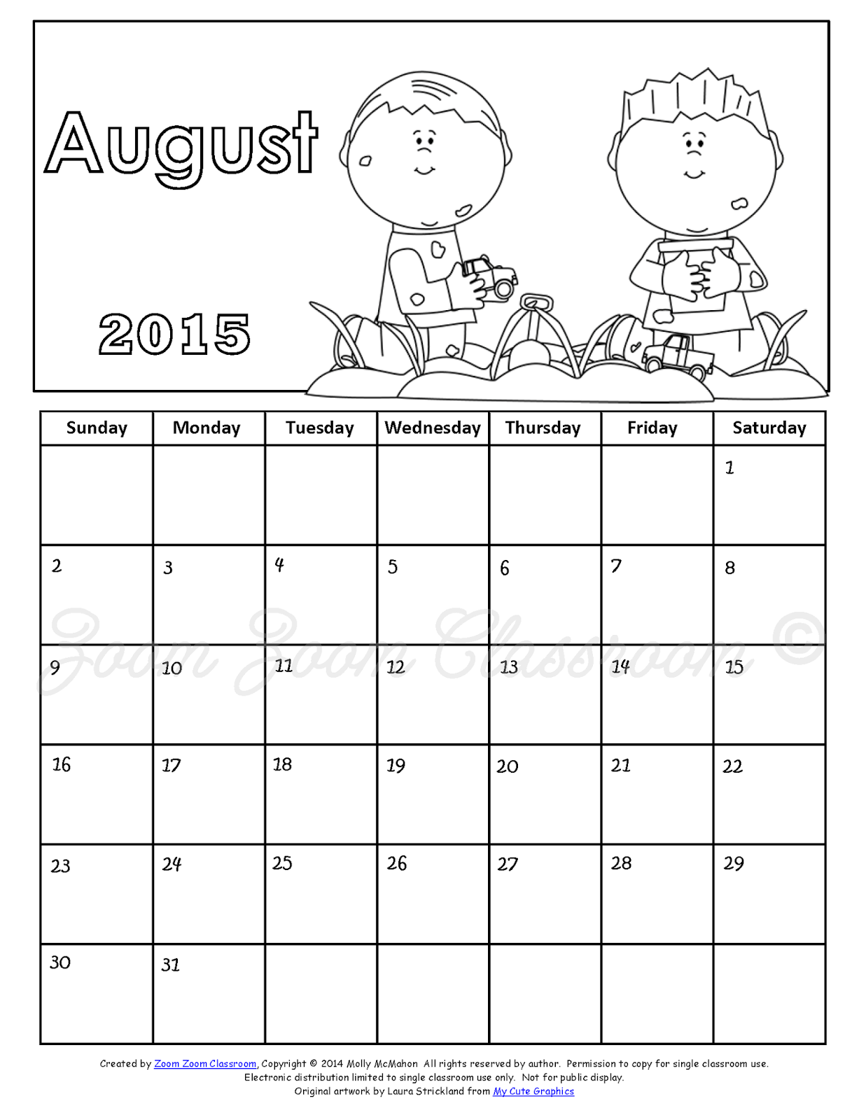 Free Printable August 2015 Calendar For Kids ~ Parenting Times